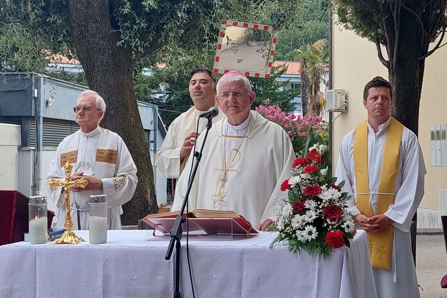 Nadbiskup je na početku, čestitajući župni blagdan, zahvalio župniku, kao i načelniku Općine, Riccardu Staraju, na gostoprimstvu kazavši da po uzoru na Abrahamovo gostoprimstvo koje je učinio Bogu, tako i mi kada smo gostoljubivi, uvijek smo u prilici da u bližnjima Boga pogostimo.
