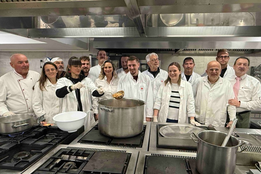 ​Ovog su puta u kuhinju Crvenog križa u Rijeci stigli vinski znalci koji su zasukali rukave i u odličnom raspoloženju se uključili u kuhanje i pripremanje obroka za potrebite, a podsjetimo, u ovoj se kuhinji dnevno priprema i do 1 500 obroka za beskućnike, korisnike pučke kuhinje te sve one kojima je pomoć potrebna.