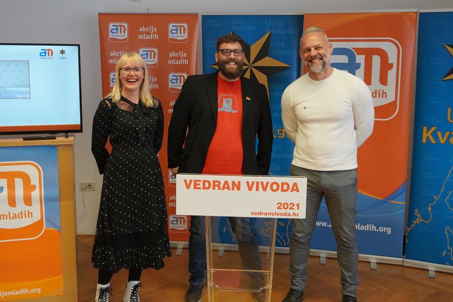 Kandidat Akcije mladih i Unije Kvarnera za gradonačelnika Grada Rijeke VEDRAN VIVODA, gradska vijećnica Akcije mladih ANET TROPE i ALEN LIVERIĆ iz Unije Kvarnera predstavili su danas na tiskovnoj konferenciji pronatalitetne mjere programa TOČKA NA RI. Njihovo priopćenje prenosimo u cijelosti: