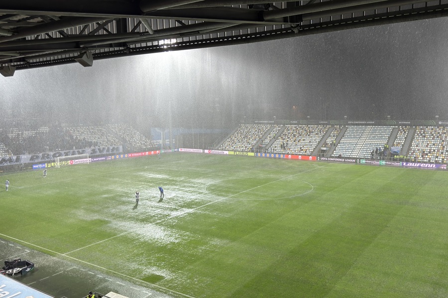 Rijeka je večeras na Rujevici započela susret protiv Sparte Prag u sklopu Konferencijske lige, u potrazi za prvim bodovima u europskom natjecanju. No, susret nije potrajao dugo – utakmica je privremeno prekinuta nakon nešto više od 13 minuta igre zbog iznimno loših vremenskih uvjeta.